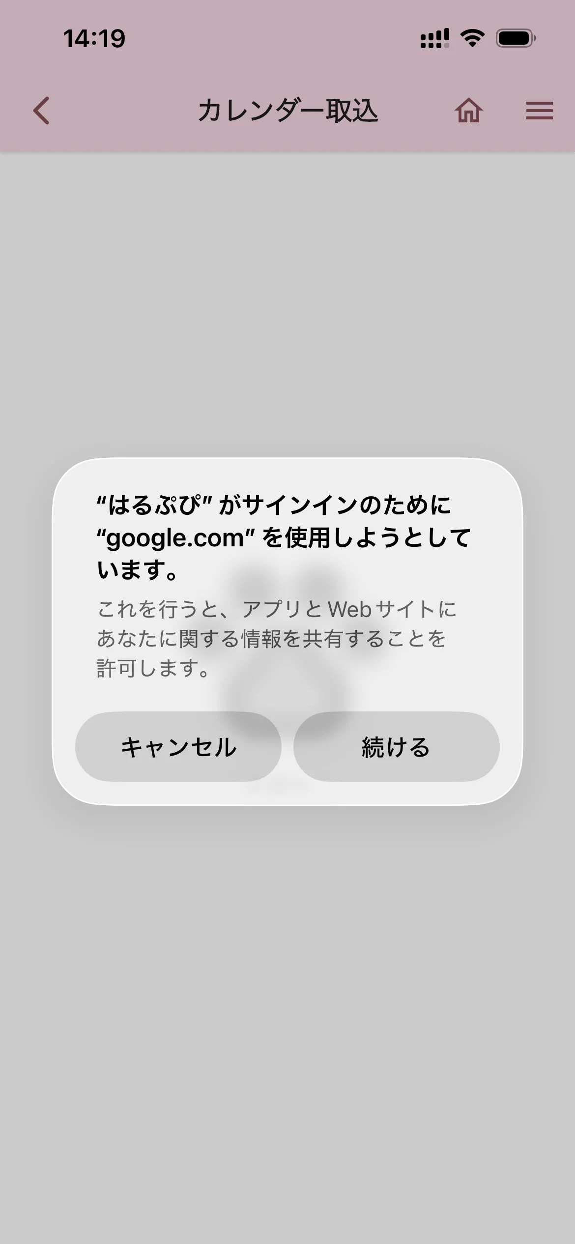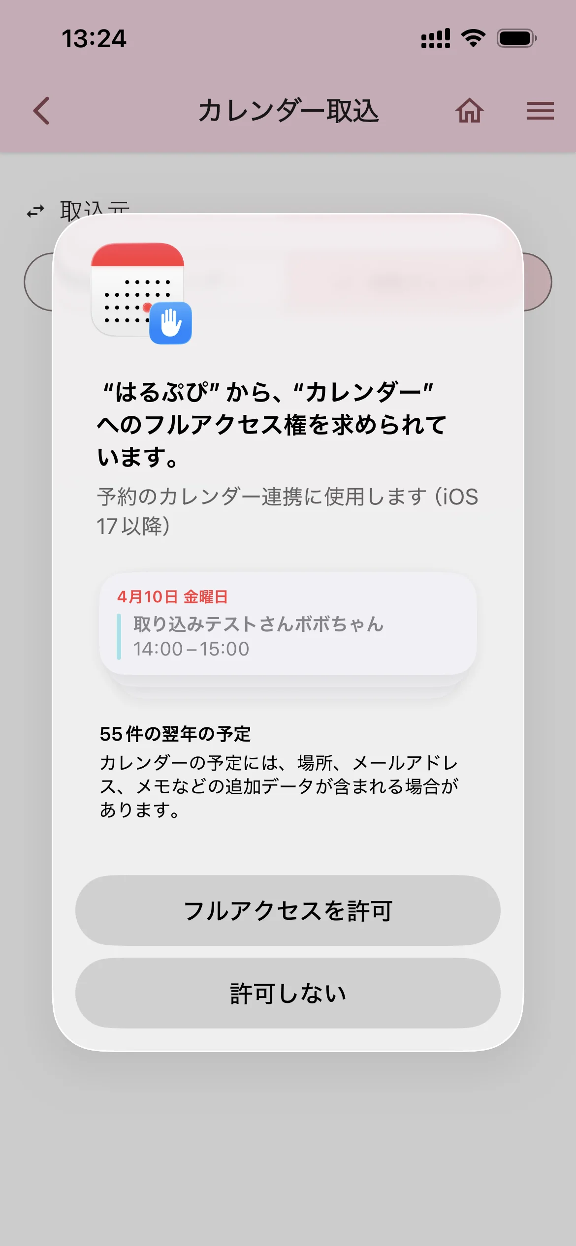 | カレンダーへのアクセス権限がありません | iPhoneの「設定」→「はるぷぴ」→「カレンダー」をオンにしてください |