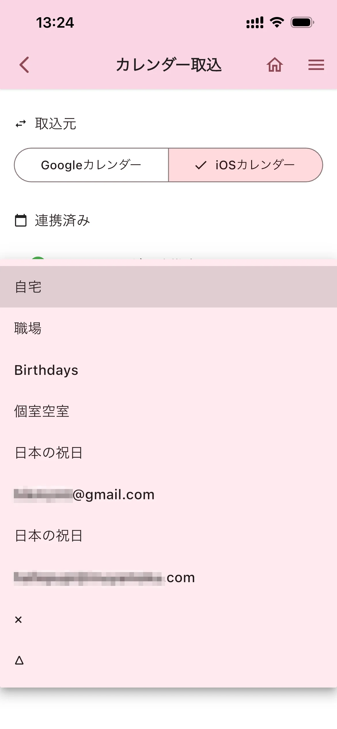 「カレンダーを選択」のドロップダウンをタップして、取り込みたいカレンダーを選んでください。
