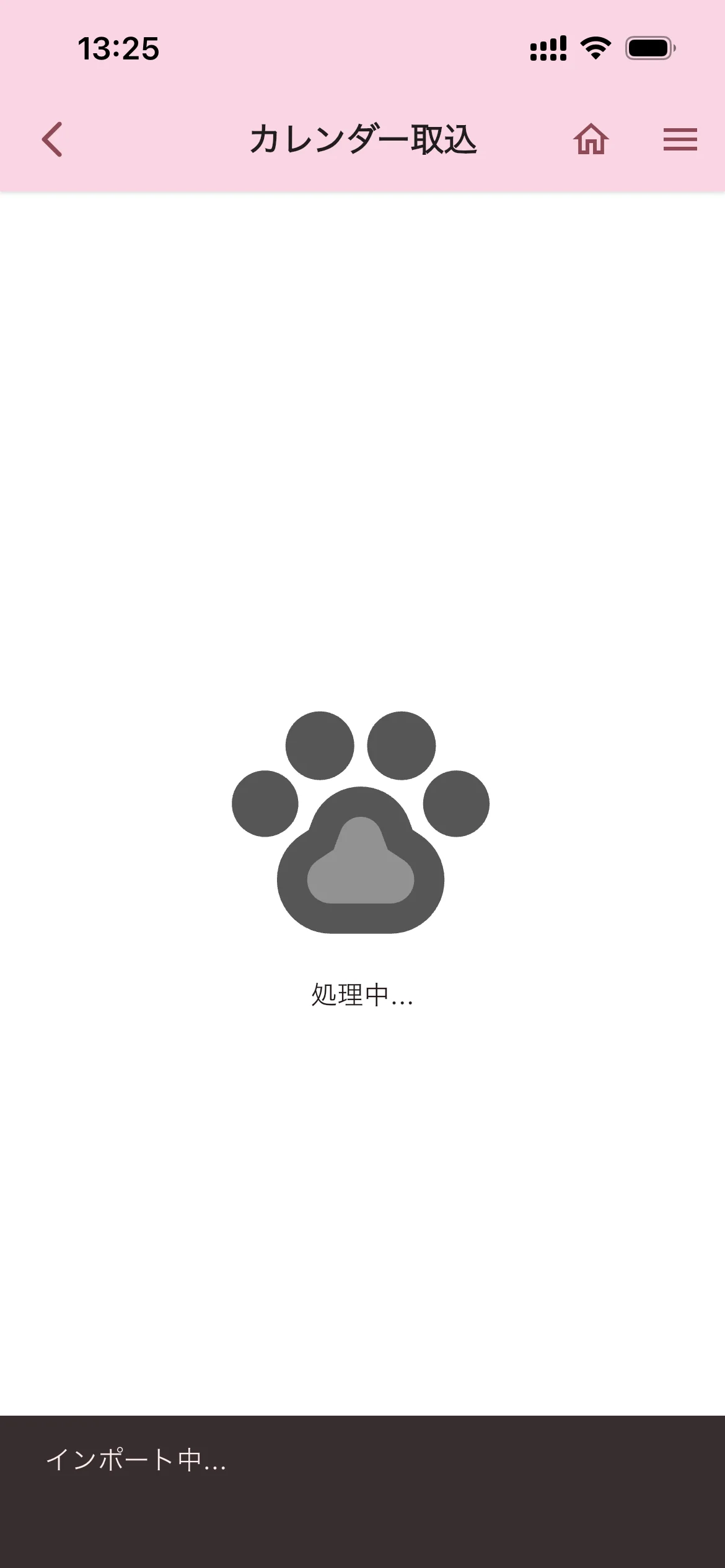 処理中は肉球マークのアニメーションと「インポート中...」が表示されます。