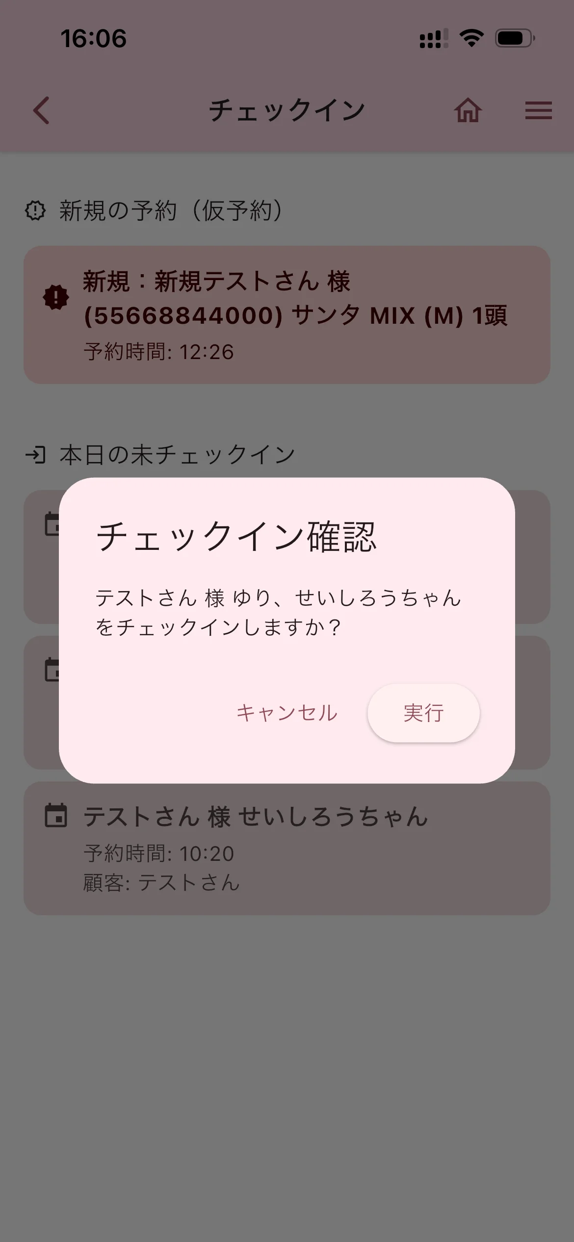 「本日の未チェックイン」のカードをタップすると確認ダイアログが表示されます。