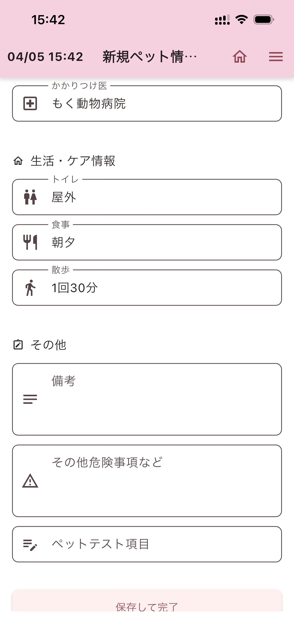 入力が終わったら「保存して完了」をタップします。