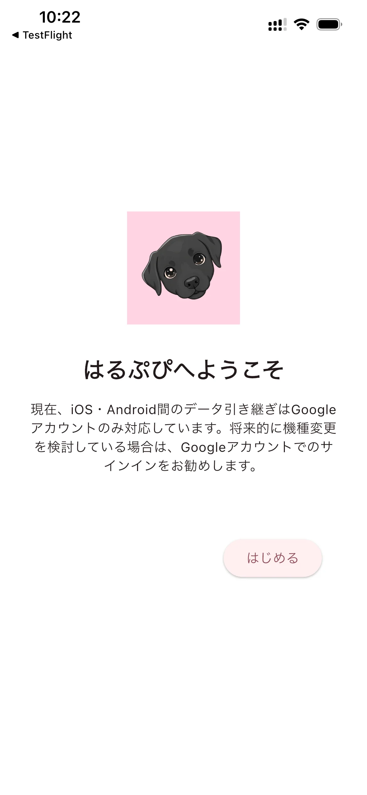 「はじめる」をタップしてください。