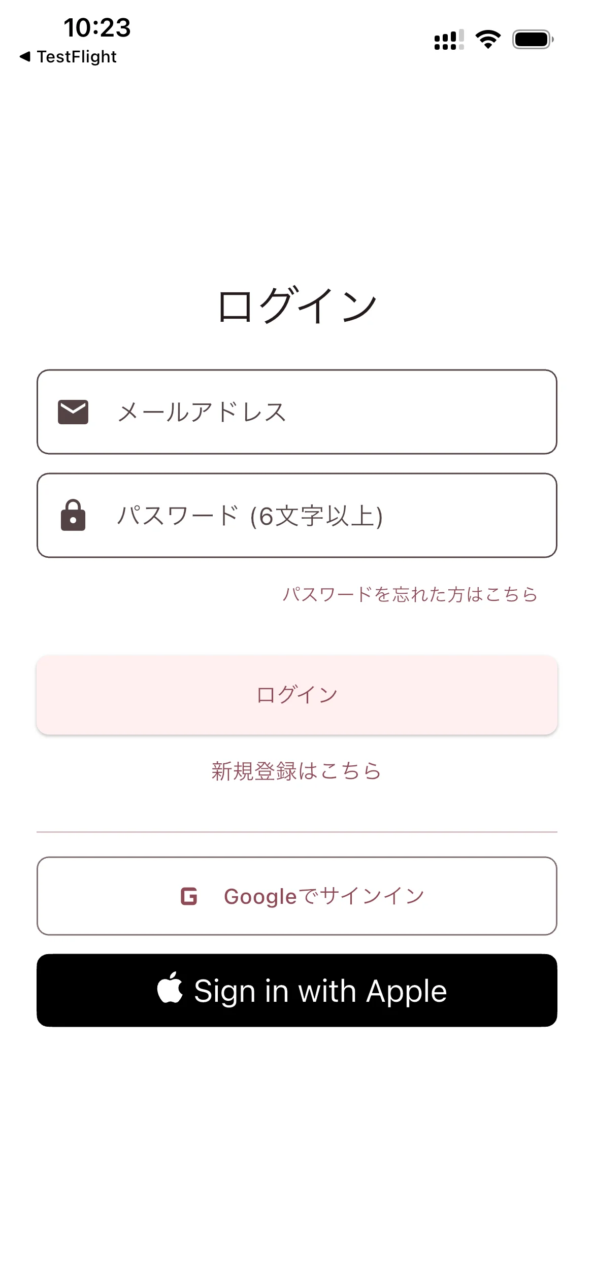 - メールアドレス+パスワードで新規登録する場合は「新規登録はこちら」をタップ