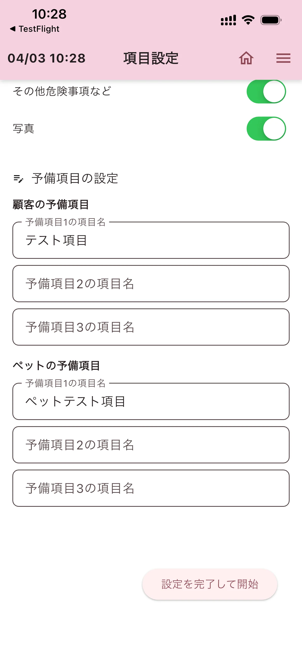 顧客・ペットそれぞれに最大3つまで独自の項目名を設定できます。(例:「アレルギー情報」「お気に入りのおやつ」など)