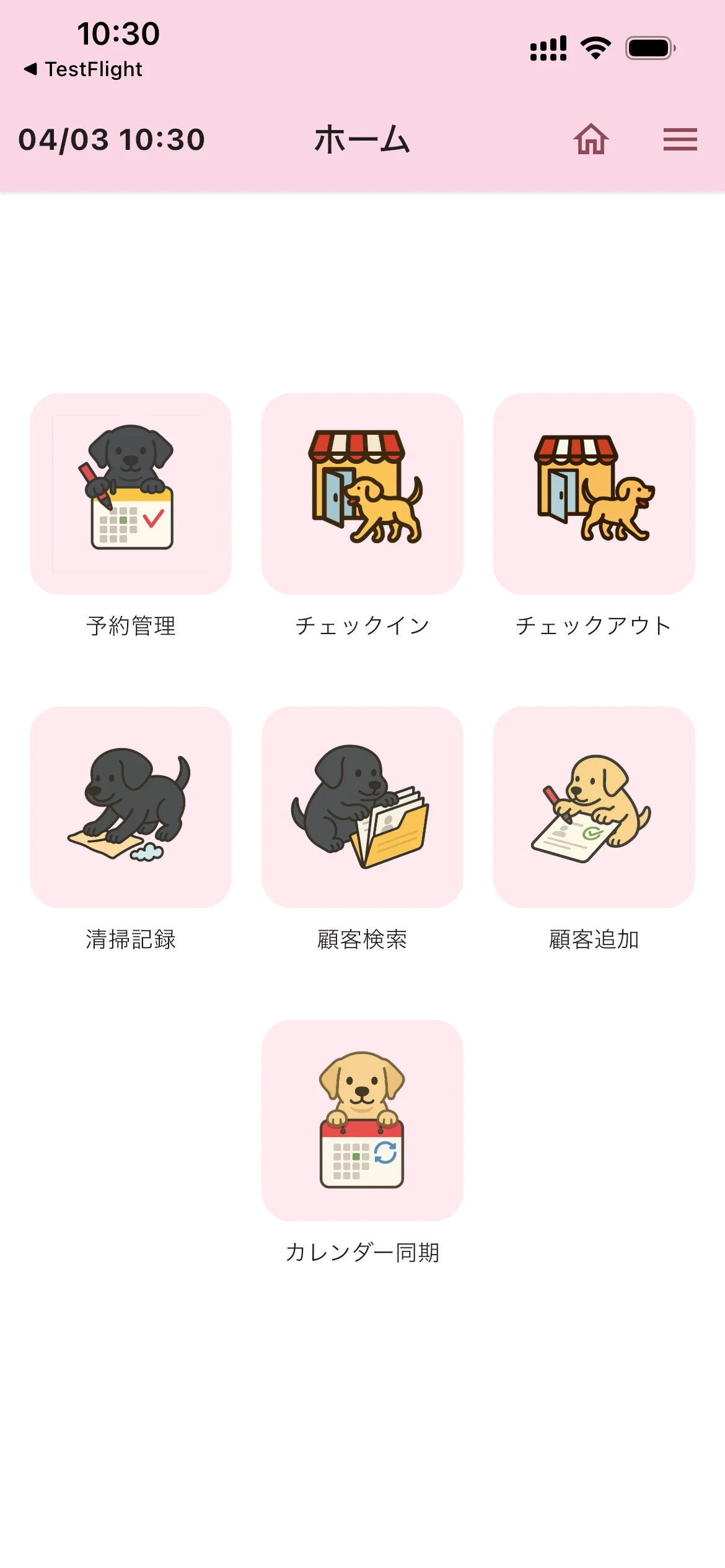 はるぷぴは、ペットホテル・トリミングサロンなどの動物取扱事業者向けの業務管理アプリです。first-launchに事業所情報の登録が必要です。所要時間は約5分です。