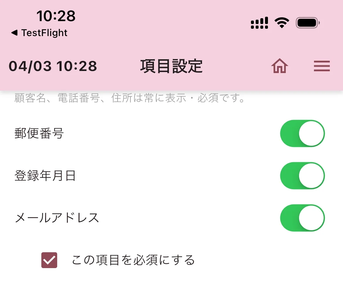 - 顧客名・電話番号・住所は常に表示されます(変更不可)