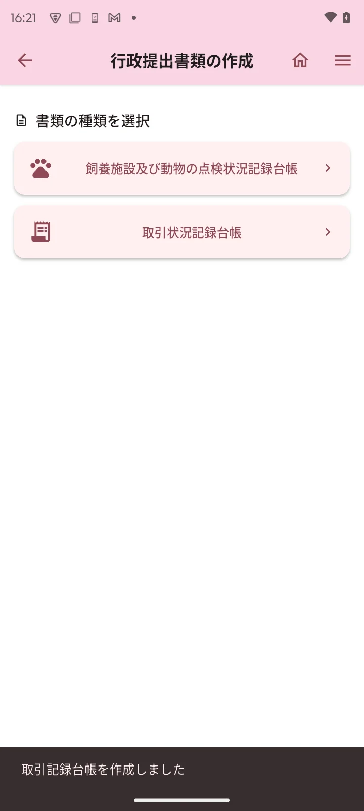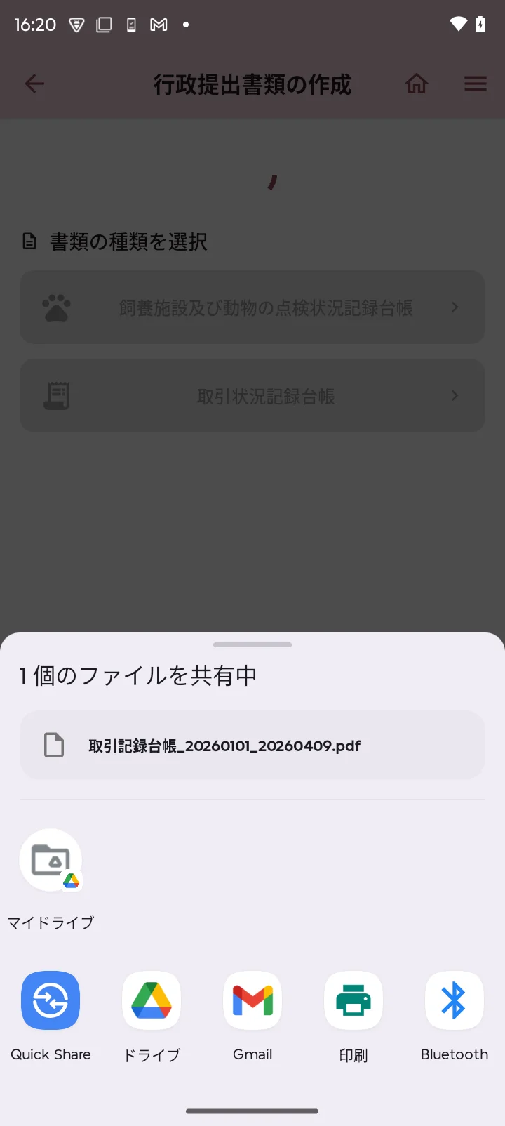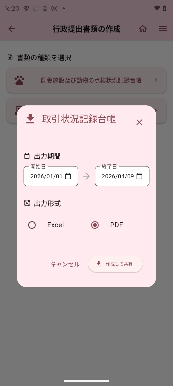 第一種動物取扱業者として行政に提出が必要な台帳を、はるぷぴのデータから自動で作成できます。ExcelまたはPDF形式で出力して、メールやGoogleドライブで保存・提出できます。