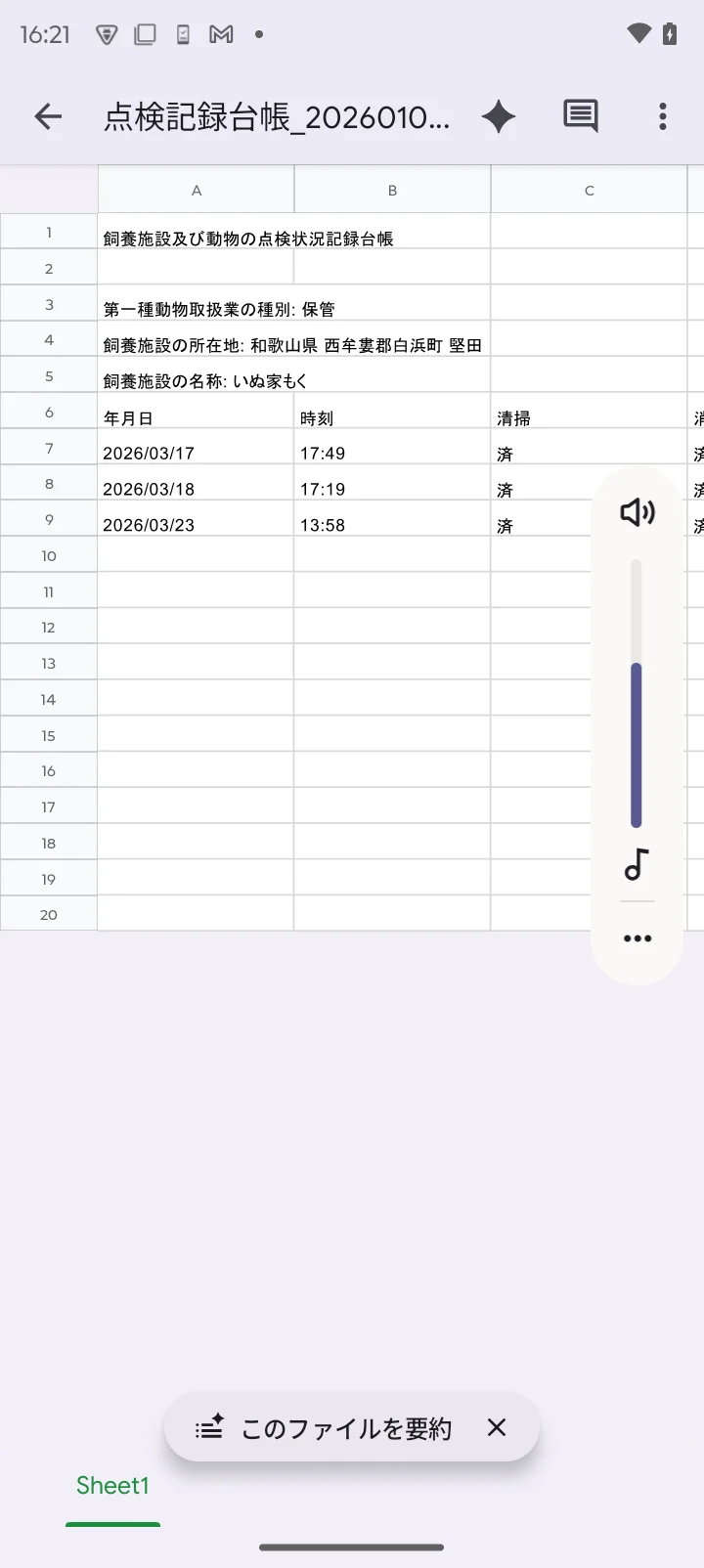| 飼養施設及び動物の点検状況記録台帳 | 清掃記録・動物の点検状況をまとめた台帳 |